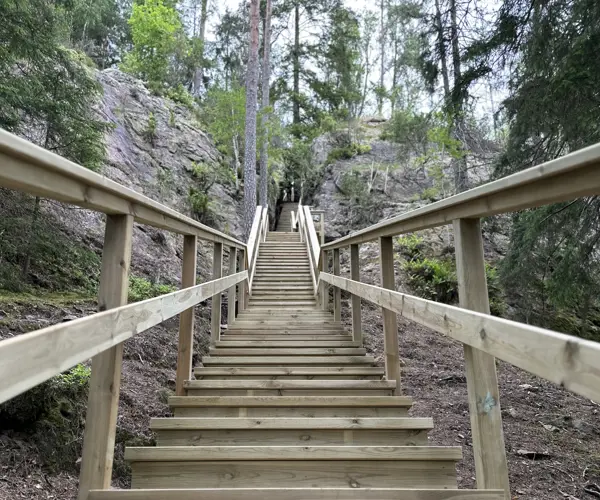 An adventurous and difficult hike. A tour for the well conditioned, where some climbing is necessary. A 500-step stairway awaits you. Meet the Giant "Jätten Berg" along the trail.