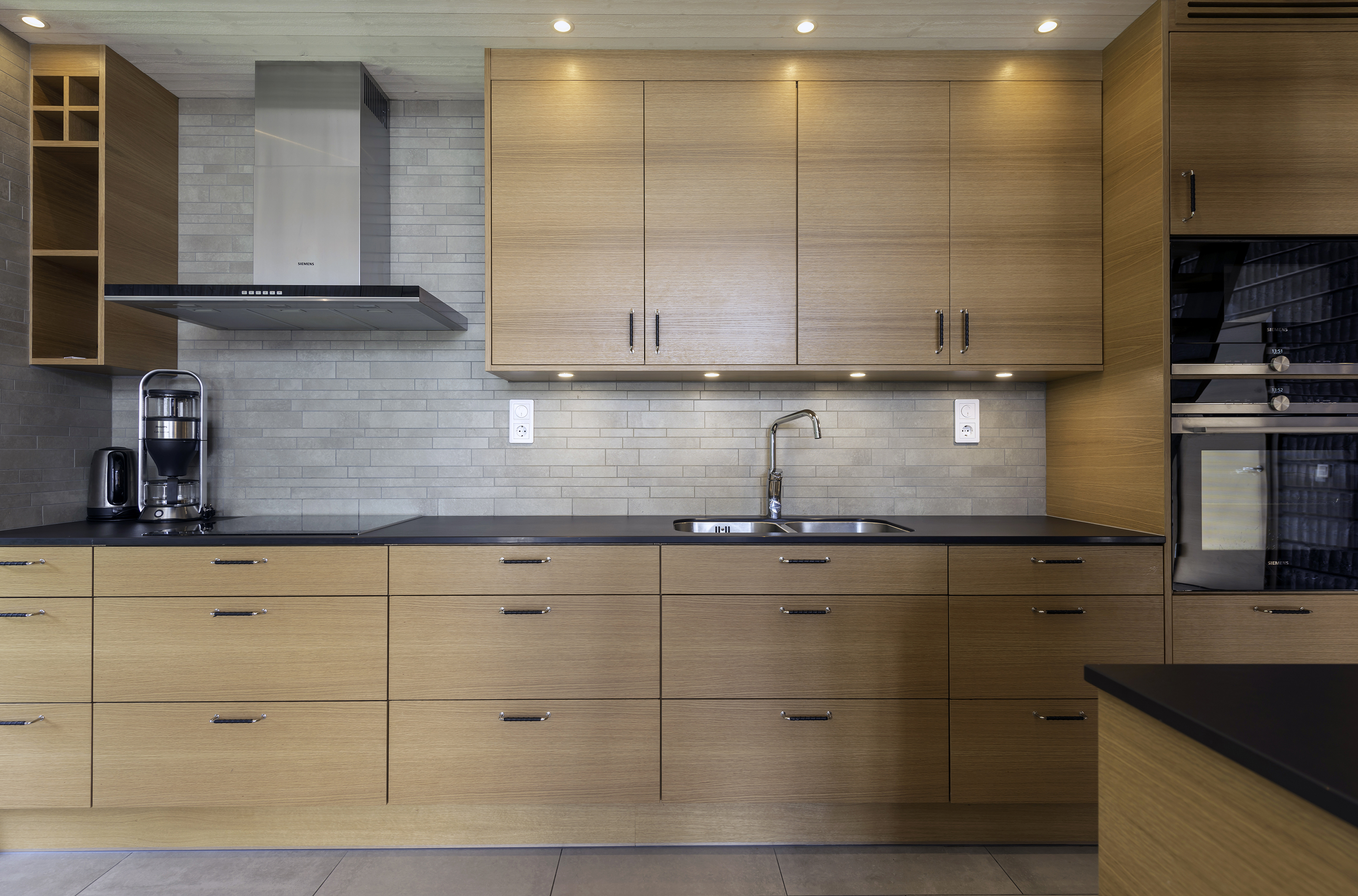 Fullutrustat kök med ugn, induktionshäll, micro, diskmaskin, kyl och frys. I köket finns också bland annat porslin, bestick, glas, grytor, stekpanna, brödrost, kaffebryggare och vattenkokare.