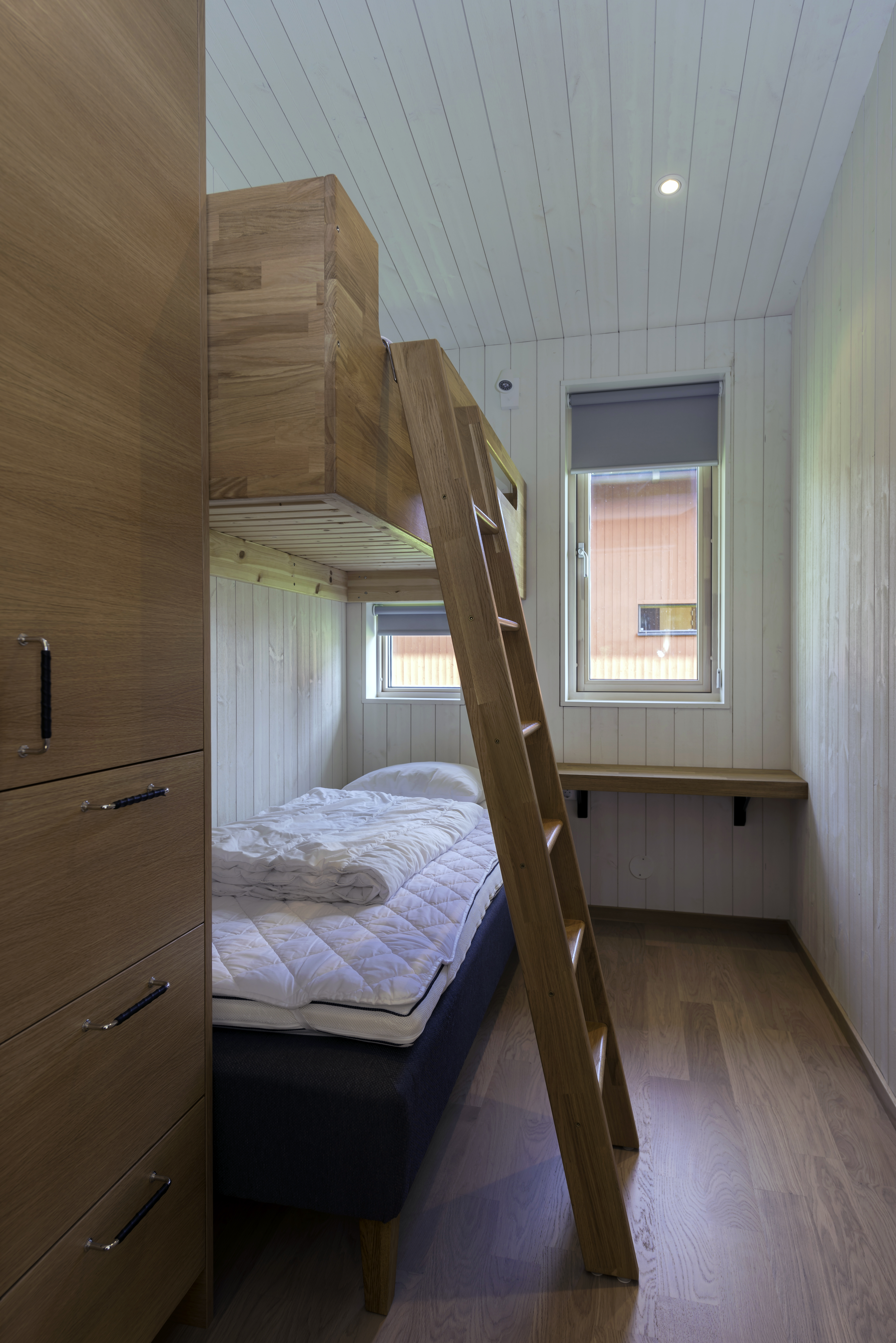 Vår största stugtyp Älgen är en upplevelse i sig med öppen spis, bastu och generösa ytor. Här finns plats för hela kompisgänget eller halva släkten - 12 bäddar fördelat på fyra sovrum (2 med dubbelsäng (90 cm x 2), ett med en våningssäng samt ett med 2 våningssängar (övre säng 80 cm, nedre säng 90 cm)) + sovloft med 1 dubbelsäng (90 cm x 2). Allrummet i huset har en stor murad öppen spis och generösa sällskapsytor med utsikt mot Isabergstoppen.