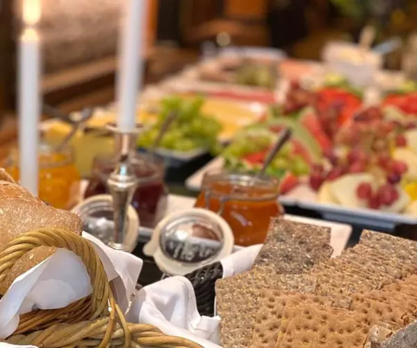 Varje morgon erbjuder vi ett brett utbud av både söta och salta alternativ. Nygräddat bröd, bacon, äggröra, färsk frukt, grönsaker, olika smaker av yoghurt, smoothies, kaffe, te, ett urval av ostar och charkuterier med mera. Vi erbjuder även specialkost. På vår frukostbuffé finns allergianpassade alternativ, inklusive gluten- och laktosfria produkter, samt veganska och vegetariska alternativ.
