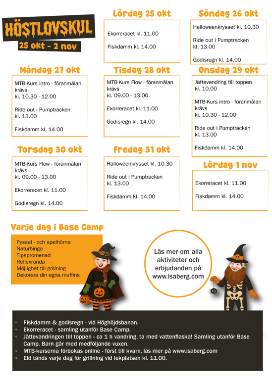 Vi samlas vid BaseCamps entré och går en gemensam vandring via Jättetrappan till tornet och tillbaka. Under tiden tittar vi på Isa och Bergs uppdrag. Alla får en folder med dig och kan svara på frågorna. Man går tillsammans med sin förälder/vuxen.